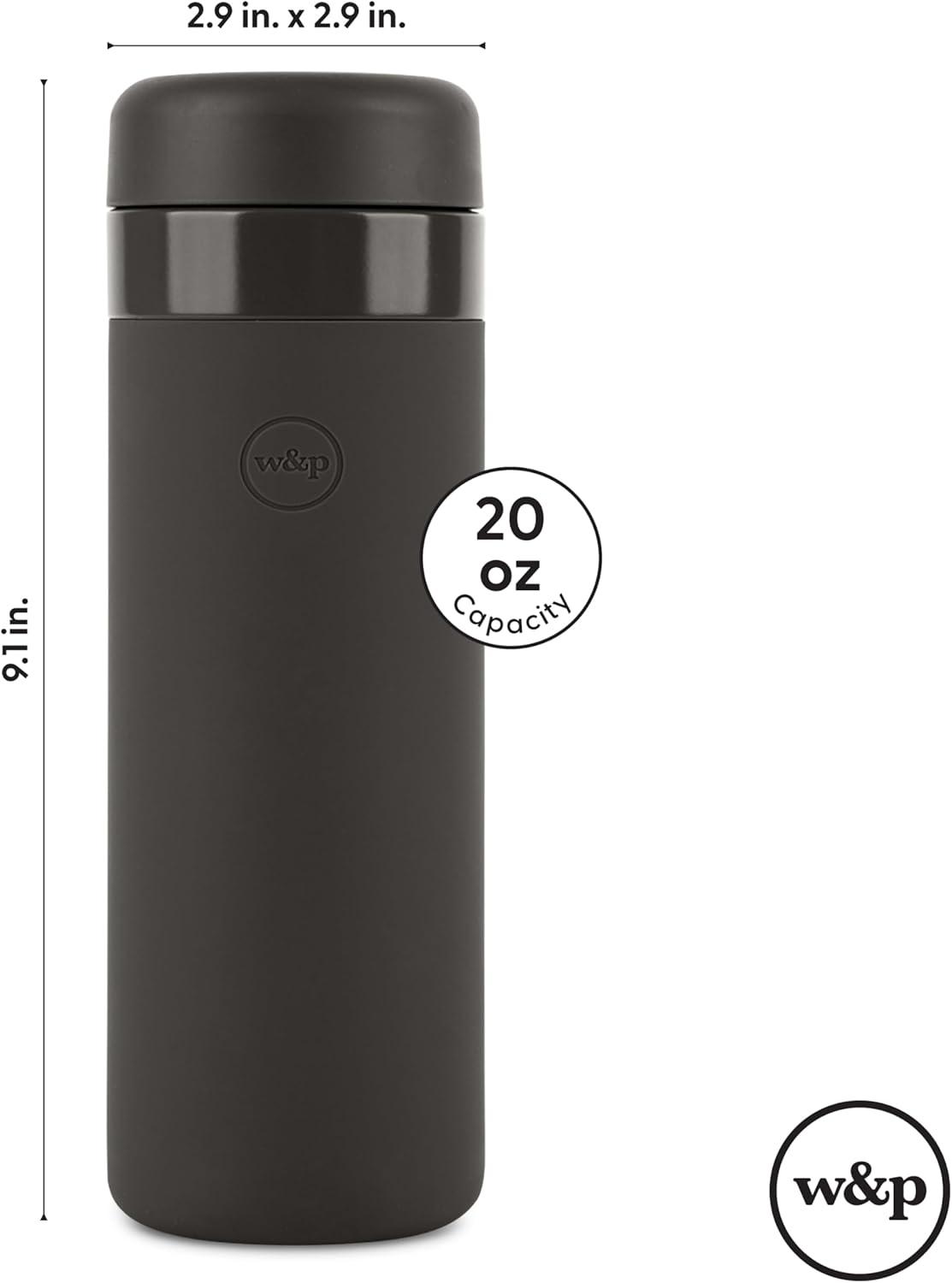 W&P Porter Insulated Water Bottle, 20oz Lavender, Vacuum Insulated Stainless Steel with Ceramic Coating, Leak Proof, Dishwasher Safe(Charcoal)